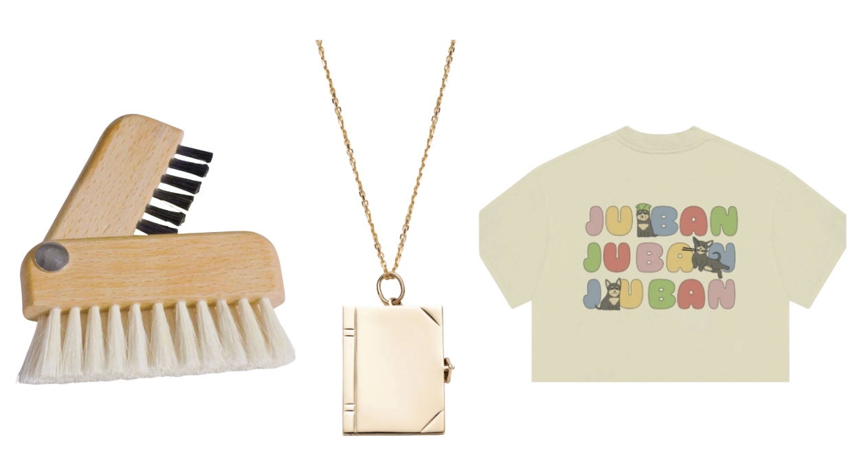 Four Corner Supply Co. Laptop Brush, Heritage Jewelry New York Book Pendant, Juban t-shirt